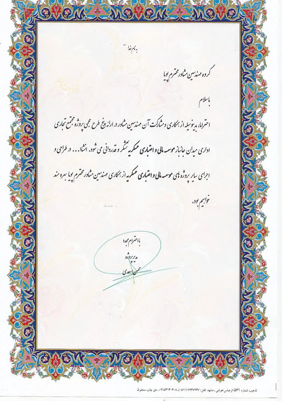 مهندسین مشاور پویا در حين اجراي كارهاي اجرايي پروژه، گزارش پيشرفت كارهاي اجرايي را بطور مجلد در پايان هر ماه تهيه و بطور مرتب به كارفرما ارائه مي نمايد.